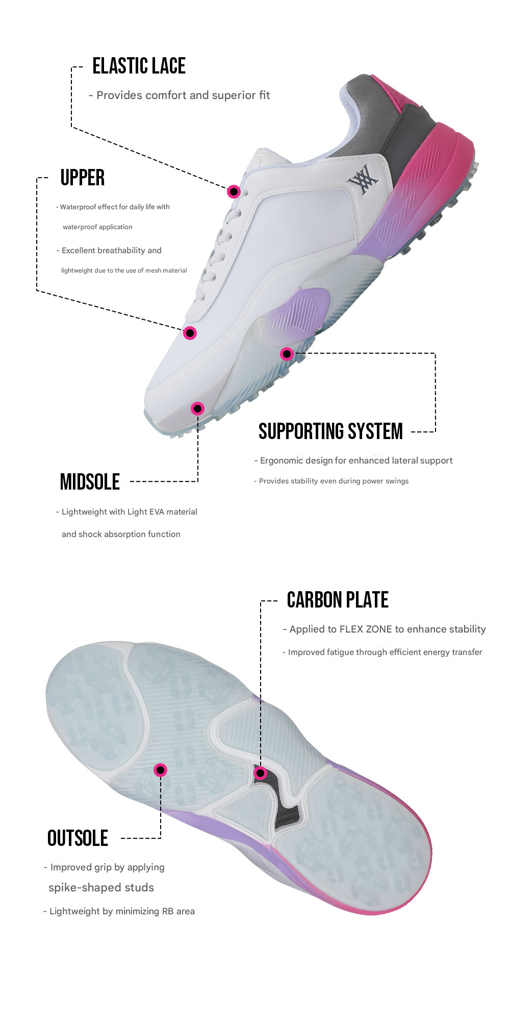 Enjoy a perfect blend of comfort and sporty elegance with this design. The elastic shoe opening ensures an easy, snug fit, while golf-inspired three-dimensional detailing adds a dynamic and athletic edge to your look.