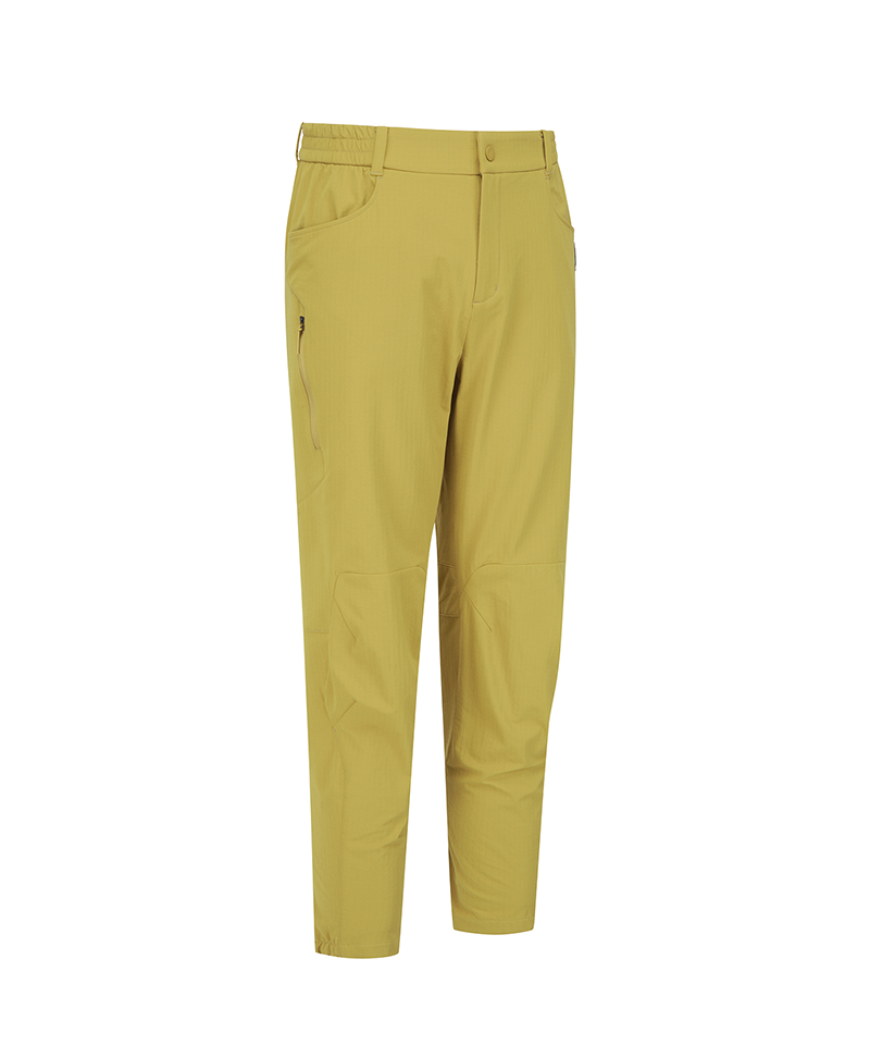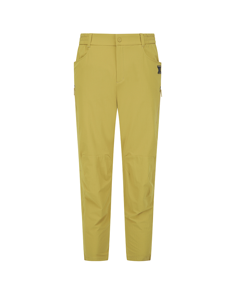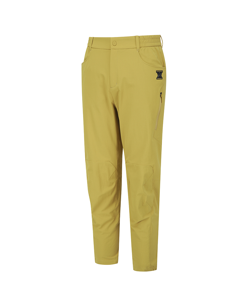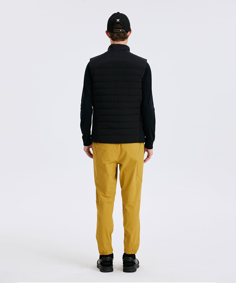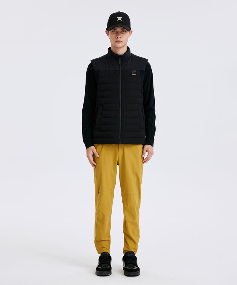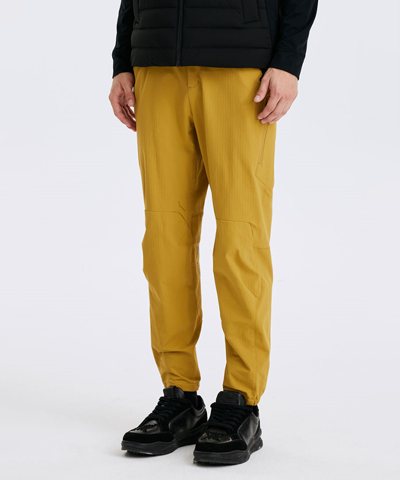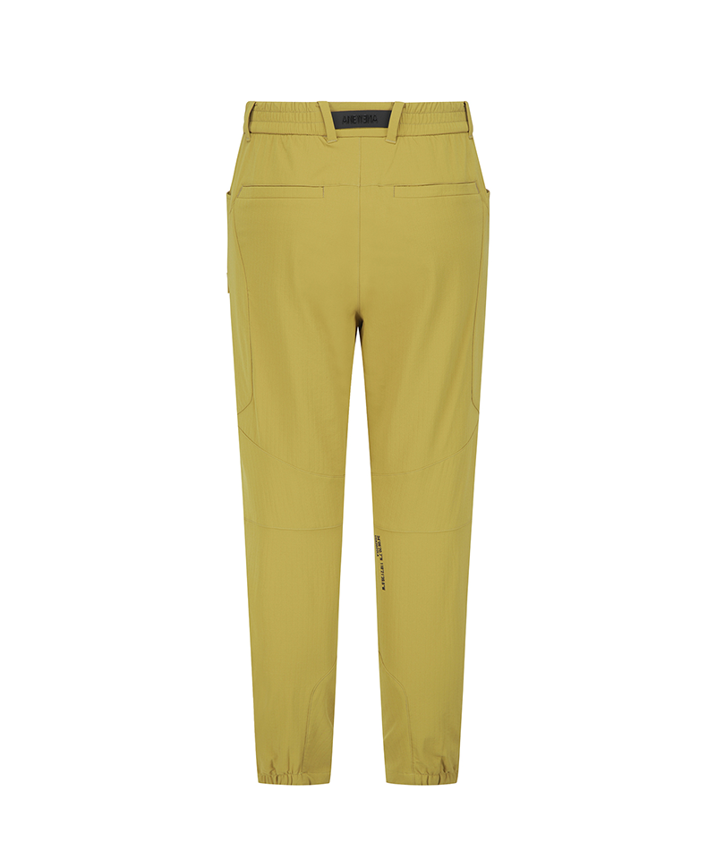 These are the "Performance" line jogger fit pants. They offer excellent fit and comfort by applying a three-dimensional pattern and cutting method that take address movements into account. They feature a hyperlon wappen detail at the center of the back of the waist, and they can be worn as a set-up with items from the same performance line.
