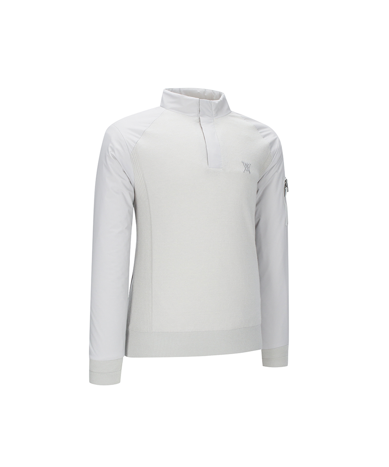 Men's Preformance Wind Block Hybrid Pullover - Light Grey