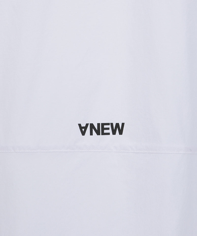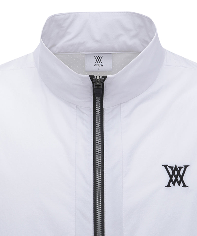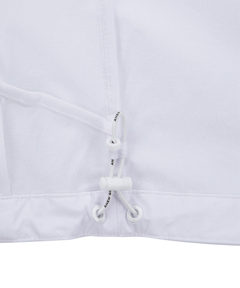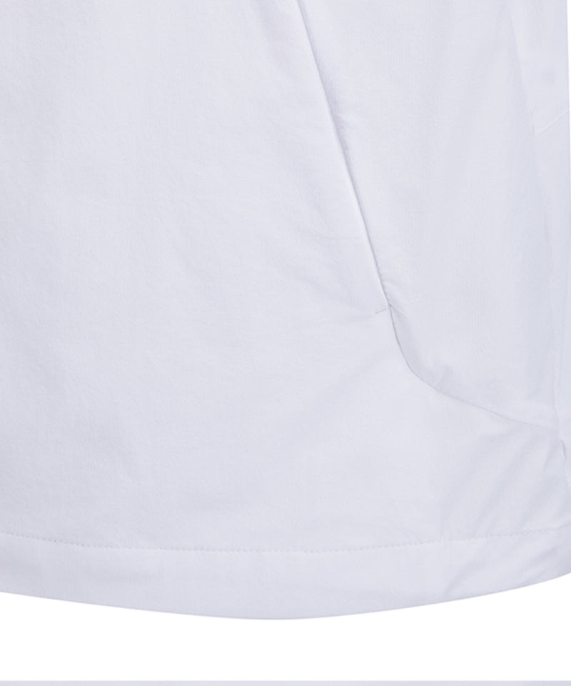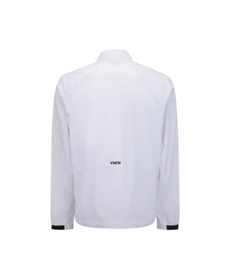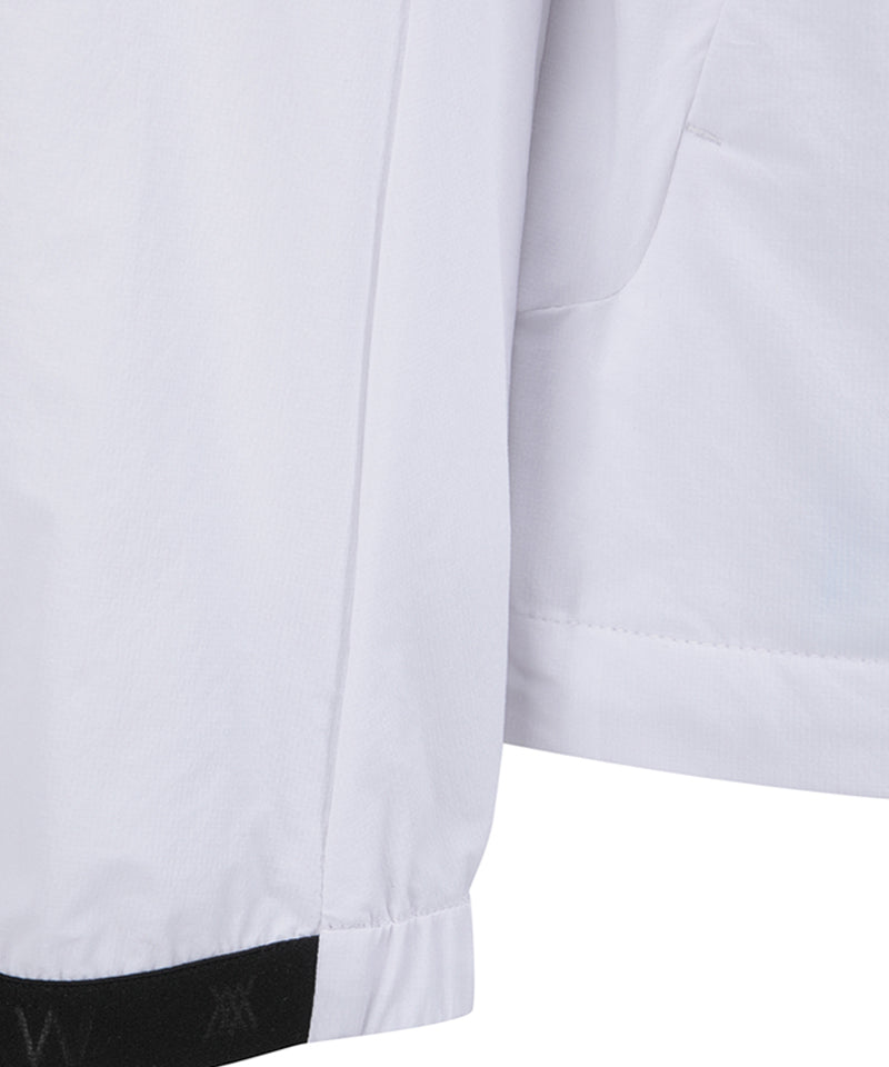 This is a lightweight summer windbreaker jacket with excellent stretch and a sporty design. The armholes, inside of the sleeves, and the back area, where sweat accumulates easily, are made of the same fabric with perforated material to enhance breathability. It is a good item to wear daily and is easy to mix and match with various items.