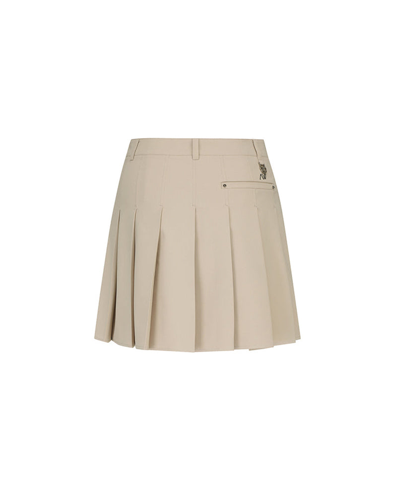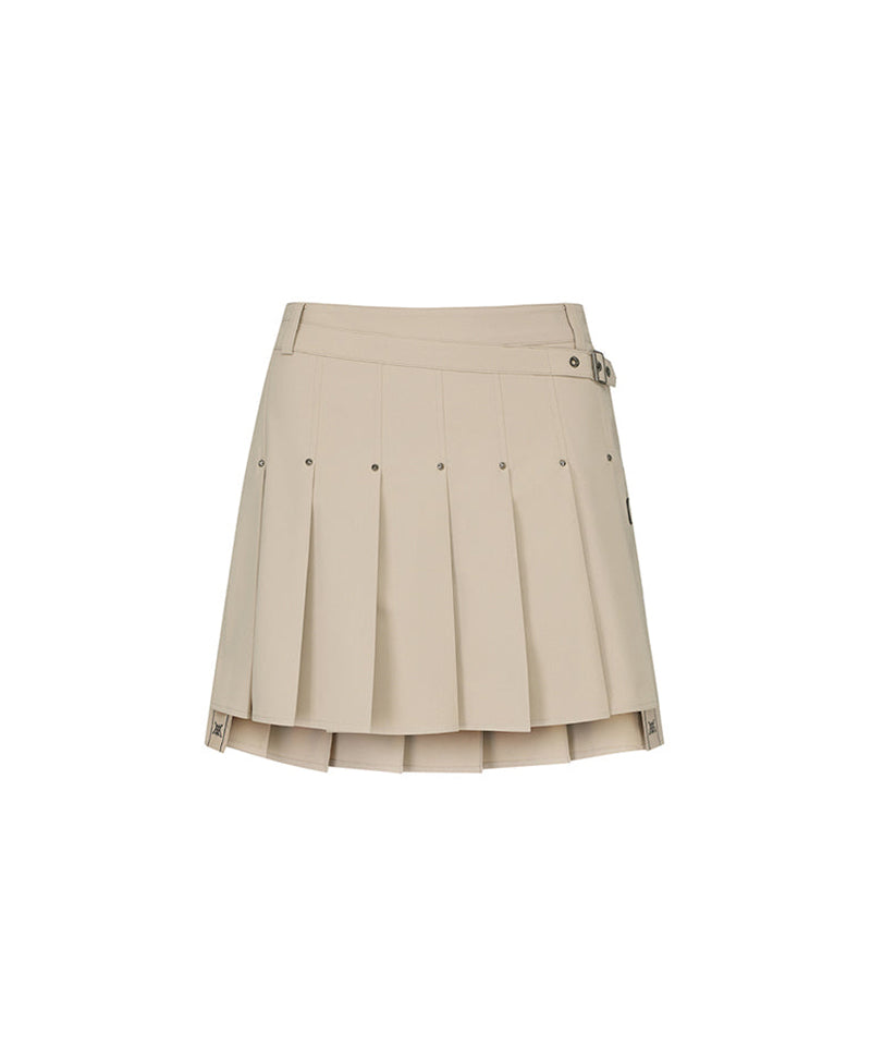Women's Women Buckle Decoration Pleats Skirt - Beige
