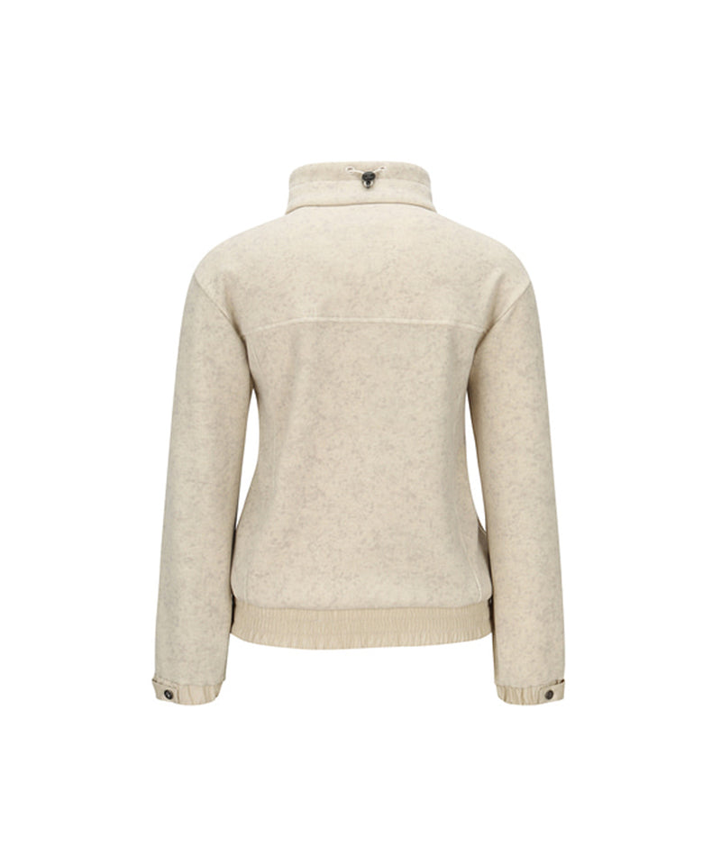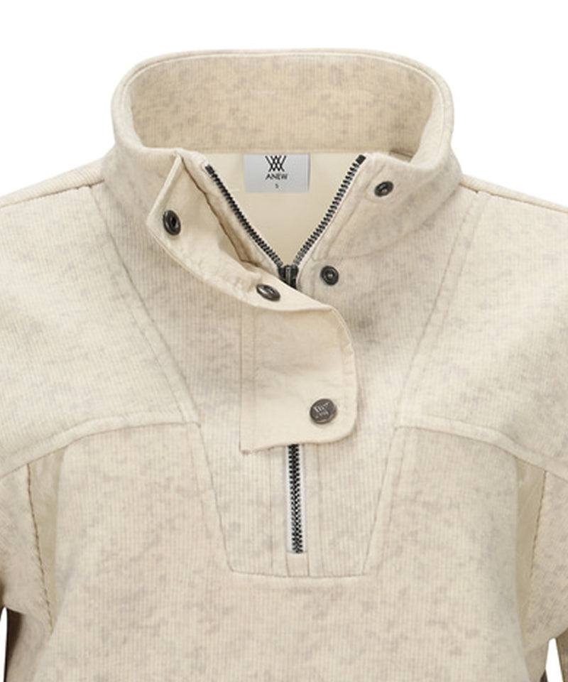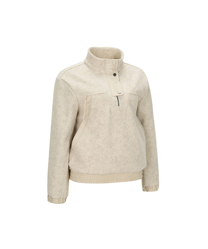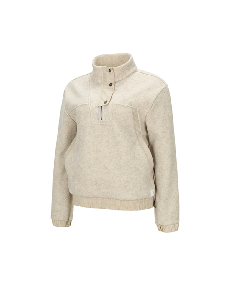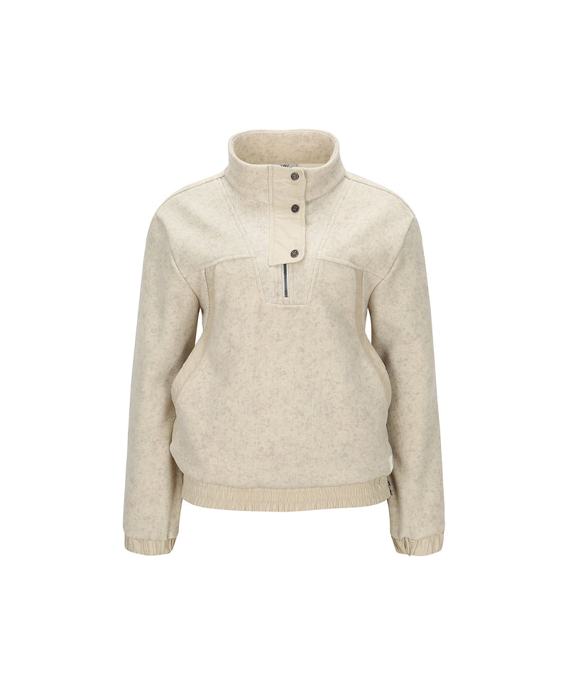 Women Half Zip-Up Long sleeve T Shirt - Light Beige