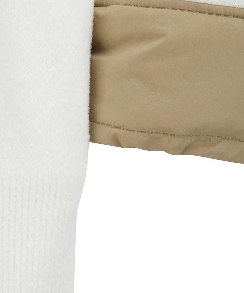 This is a women's hem-modified down knit hybrid jumper that can be worn very warmly even in the middle of winter. Unlike the knit body, the hem is woven, and the hem size can be adjusted, making it an item that emphasizes comfort and femininity at the same time.