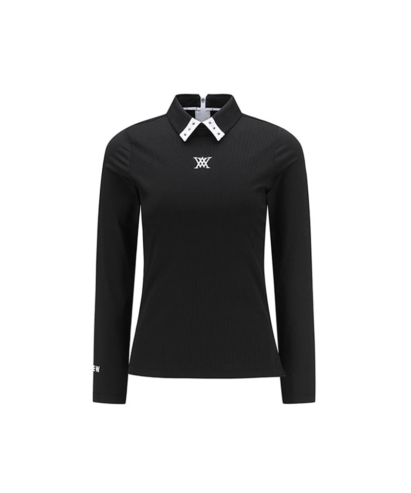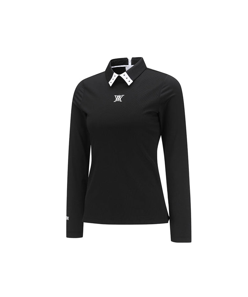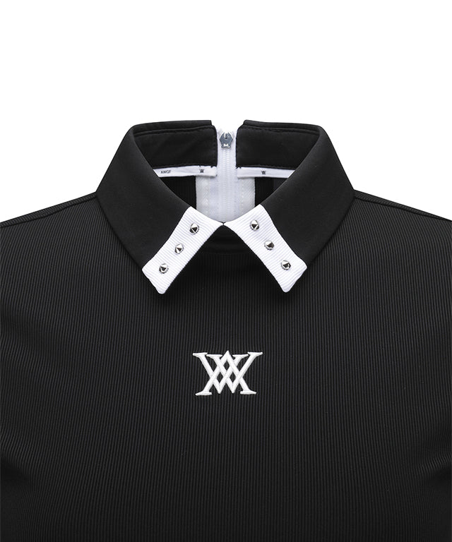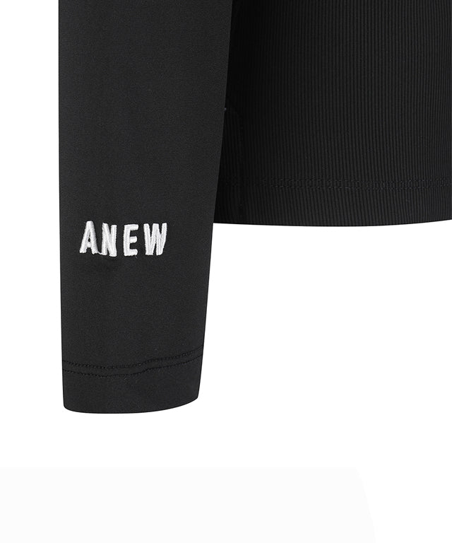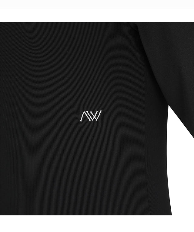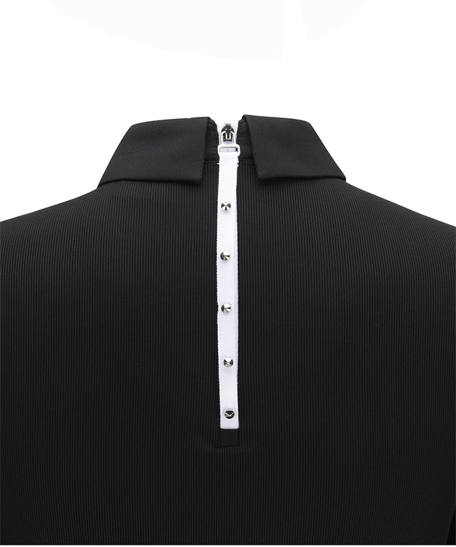 Women's Sleeve Block Back Zipper Point Ribbed Long T-Shirt - Black