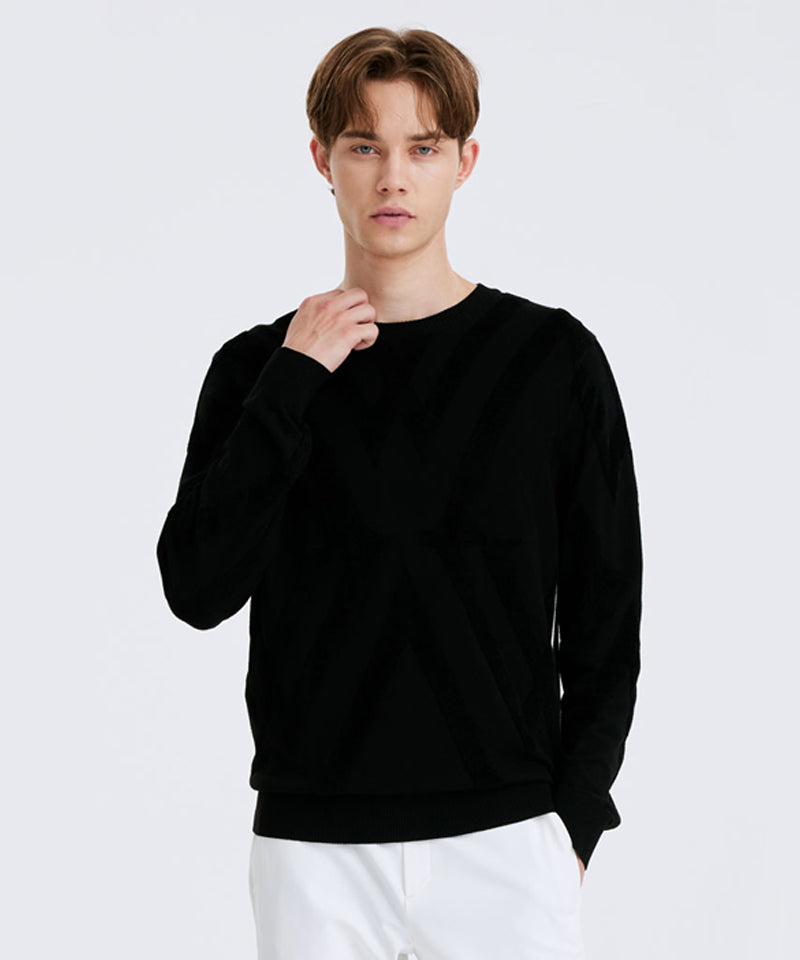 [Signature] Men's Big Logo Intarsia Pullover - Black