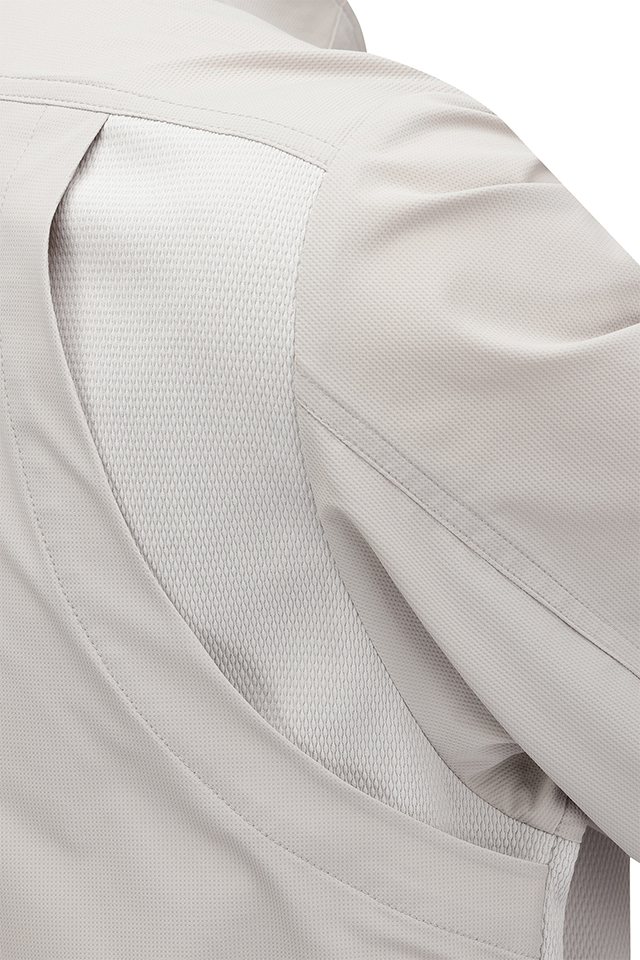 This piece features a non-exposed zipper detail that enhances both wearing comfort and overall design completeness. The front pockets are thoughtfully designed to offer practicality while adding visual appeal. A blend of woven and mesh materials ensures a lightweight, comfortable fit, while the back ventilation detail boosts breathability—making it ideal for long periods of activity and extended wear.
