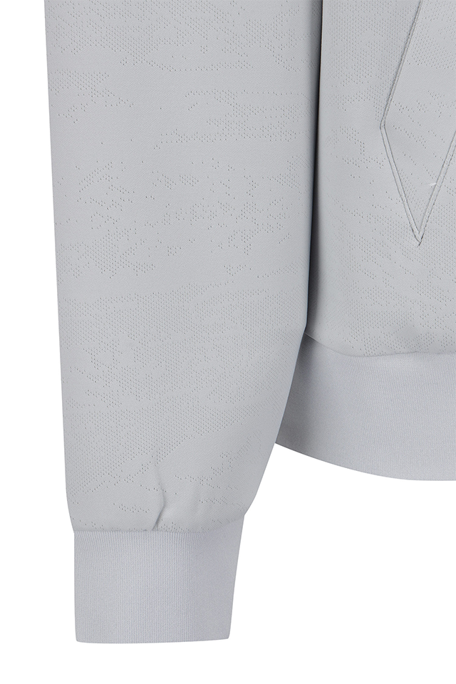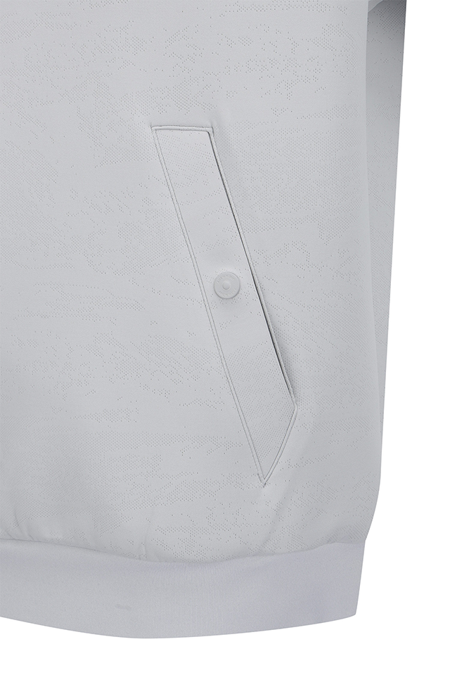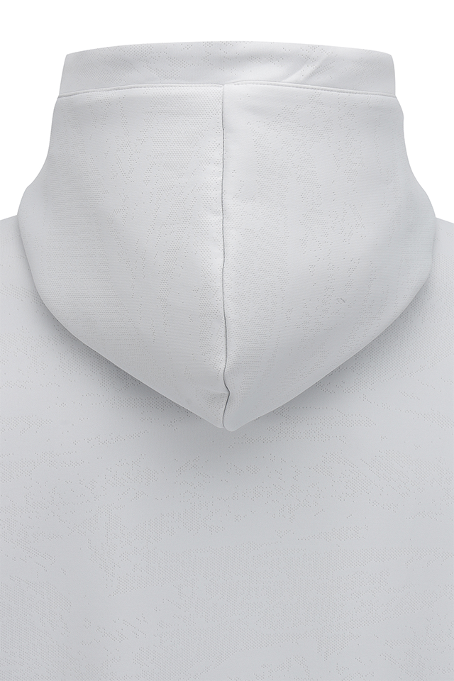 This hooded T-shirt is crafted with a soft, functional fabric and a subtle camo jacquard texture. The front features a three-dimensional logo patch and snap pockets for added practicality and style. It is a comfortable item that is great for everyday use as well as in the field.