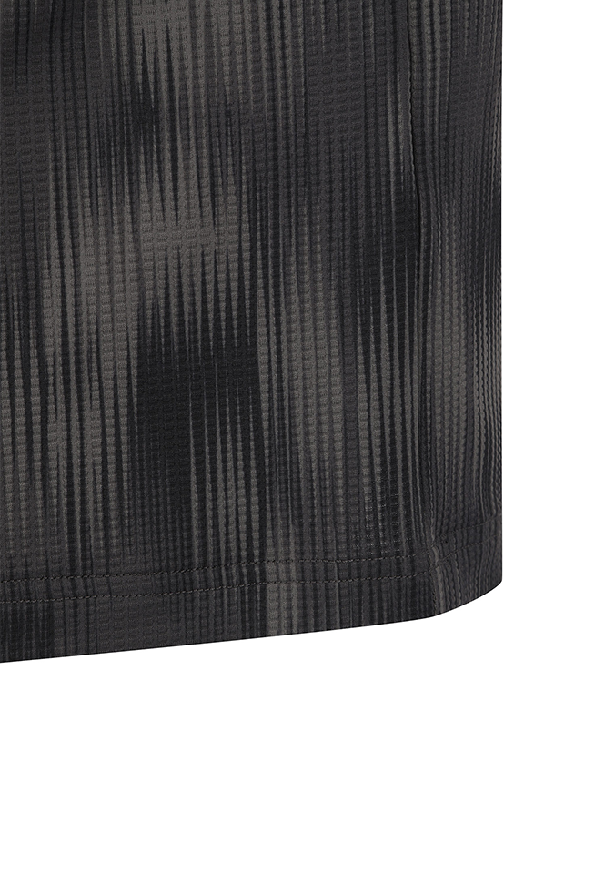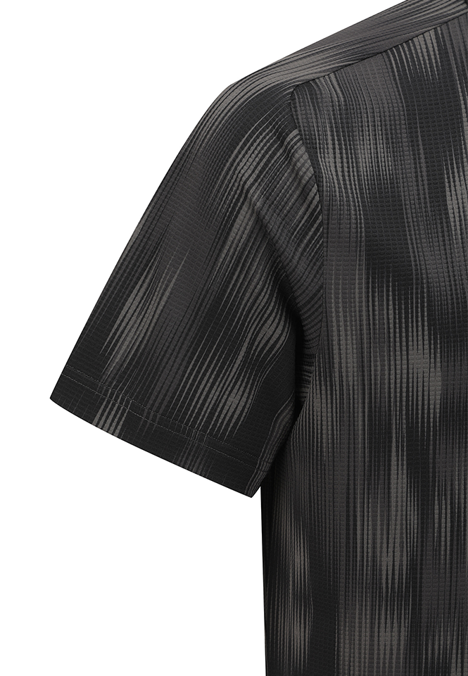 This T-shirt features a seasonable monotone pattern printed on a jacquard mesh base. Its excellent mesh design ensures a comfortable fit, even in warm weather, providing breathability without sacrificing style. The simple, refined pattern adds a touch of sophistication while maintaining a clean and polished look. The design flows seamlessly to create a balanced and natural silhouette, making it easy to style for any occasion. Whether you're dressing it up or down, this T-shirt offers versatility and ease, becoming an essential piece in your wardrobe. Perfect for a casual yet elevated look, it’s ideal for everyday wear.