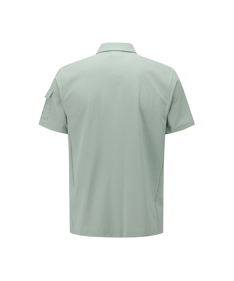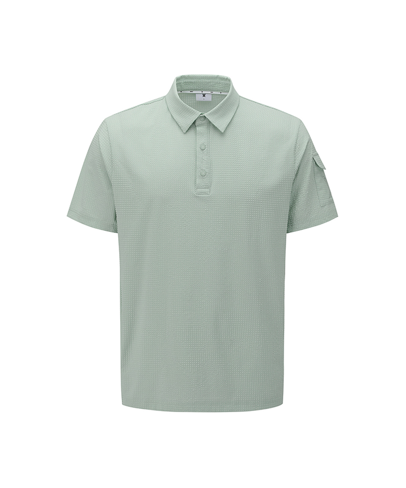 This T-shirt is designed with a modified textured knit, creating a three-dimensional surface that adds depth and a refined look. The lightweight and quick-drying material does not cling to the skin, ensuring a comfortable fit and ease of movement. Its clean silhouette and minimal detailing deliver a sporty and polished mood. Versatile in styling, it can be worn on its own or layered effortlessly under outerwear. A well-balanced piece that combines comfort, functionality, and modern style.