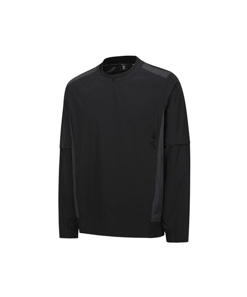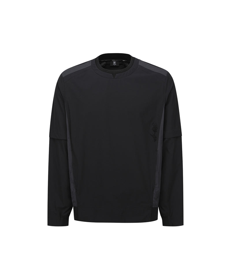 This is a round anorak jumper made of stretchy nylon. It provides a comfortable silhouette and mobility with a light and loose fit. The sleeves can be removed, so it can be used as a short-sleeved jumper depending on the season. You can create a casual style with the man-to-man style using the high-density RIP at the bottom.