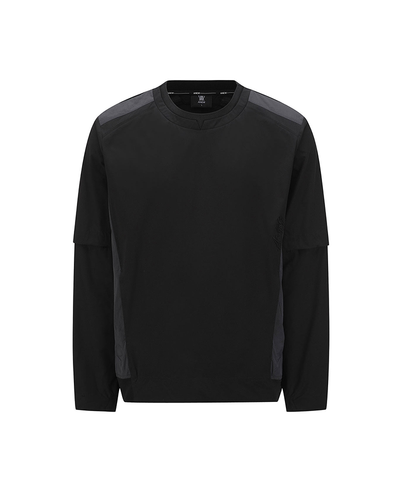 [Signature] Men's Round Neck Anorak Jacket - Black