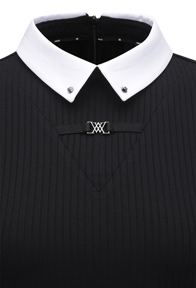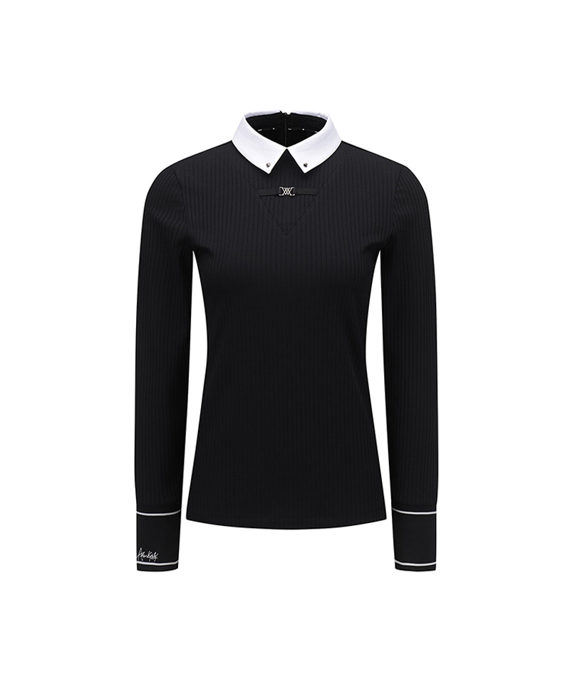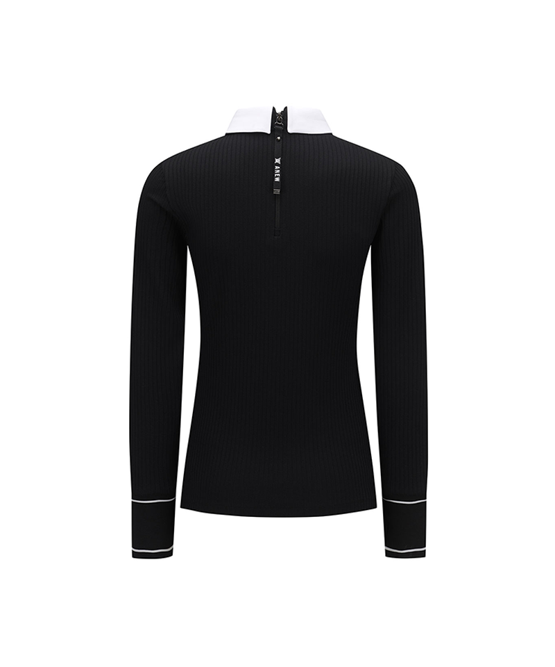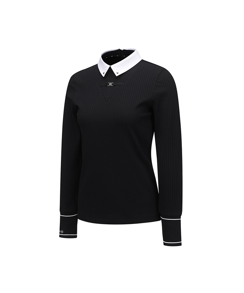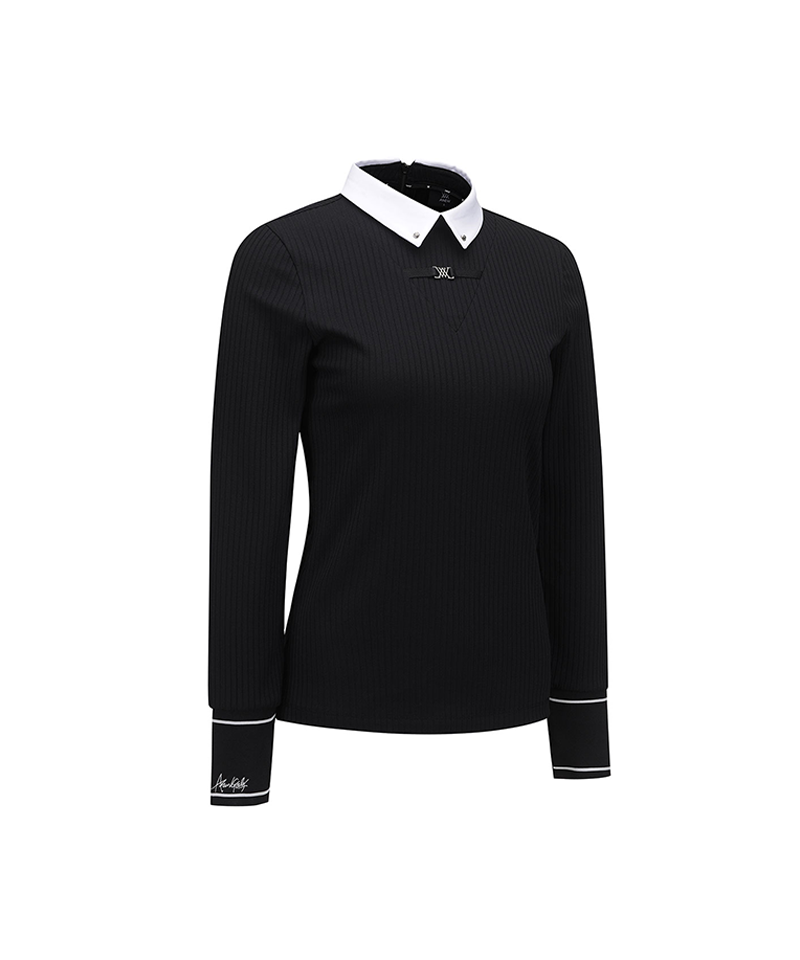 [Signature] Women's Stripe Textured L/TS - Black