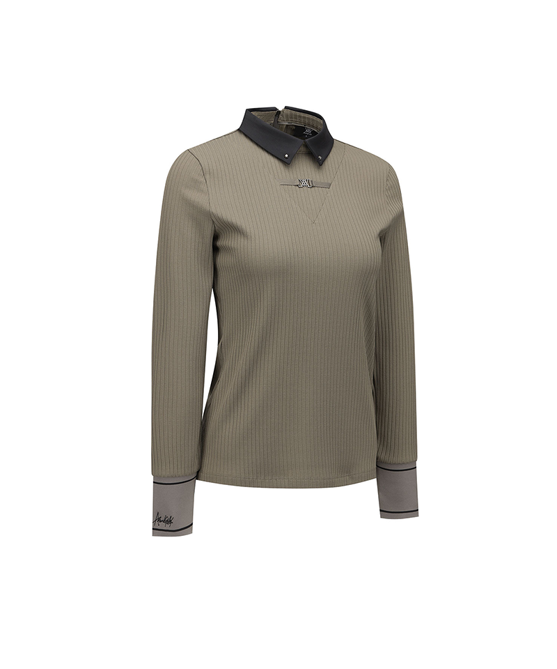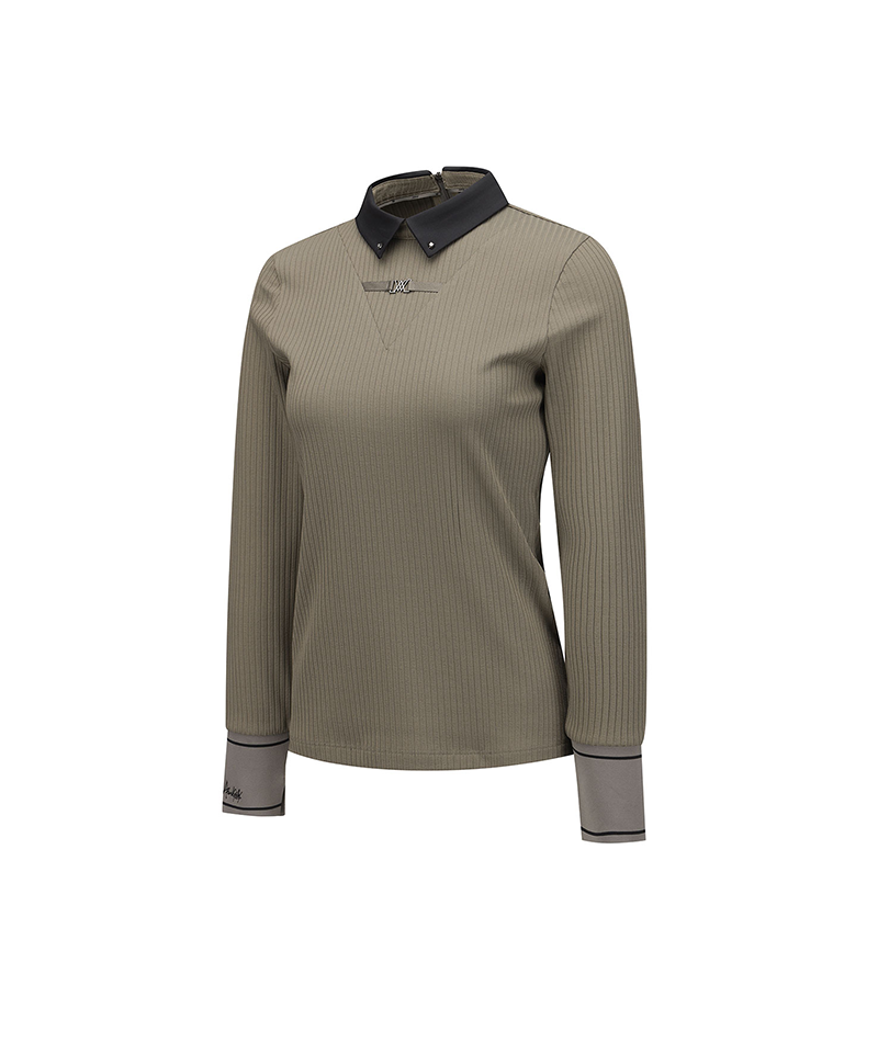[Signature] Women's Stripe Textured L/TS - Light Brown
