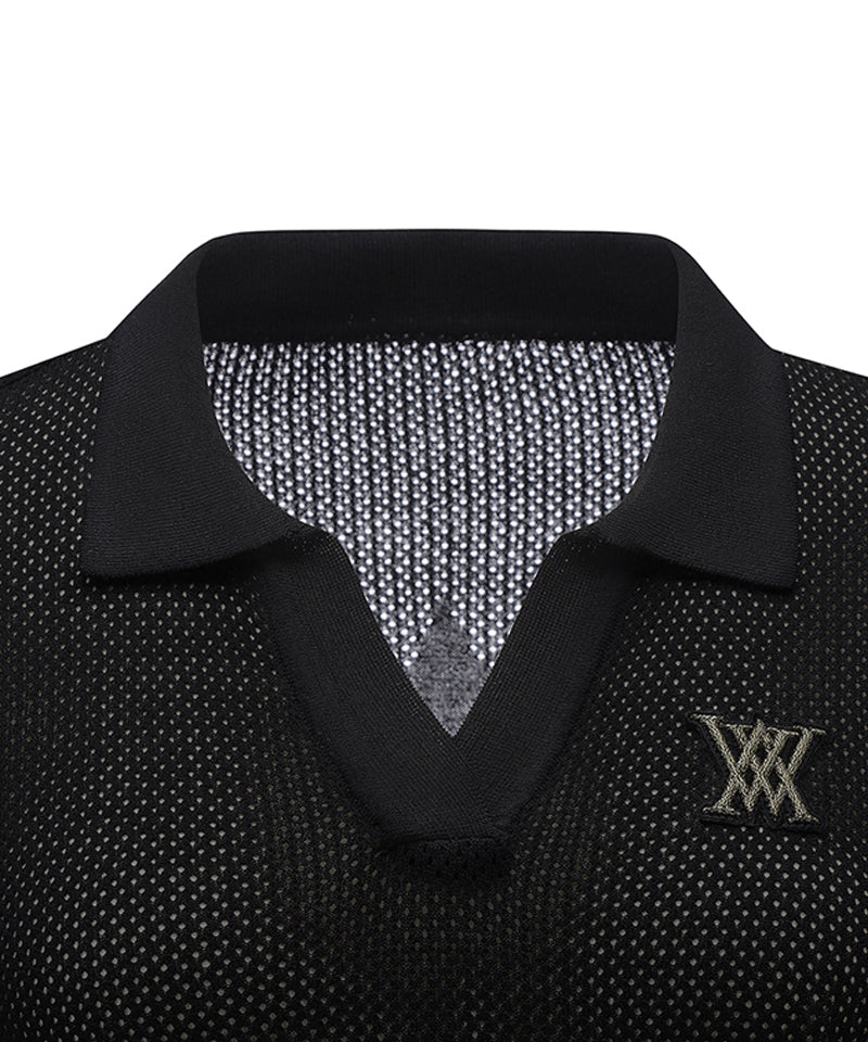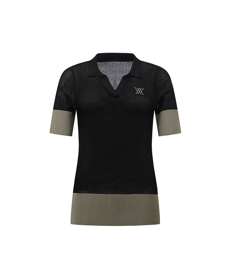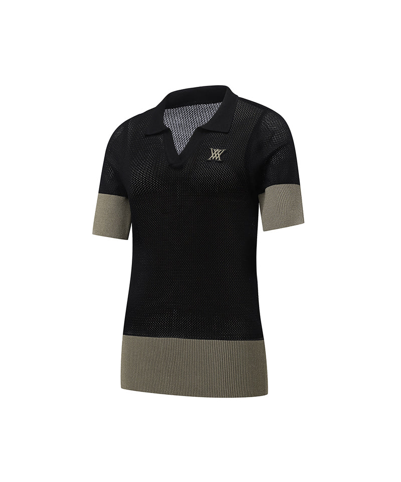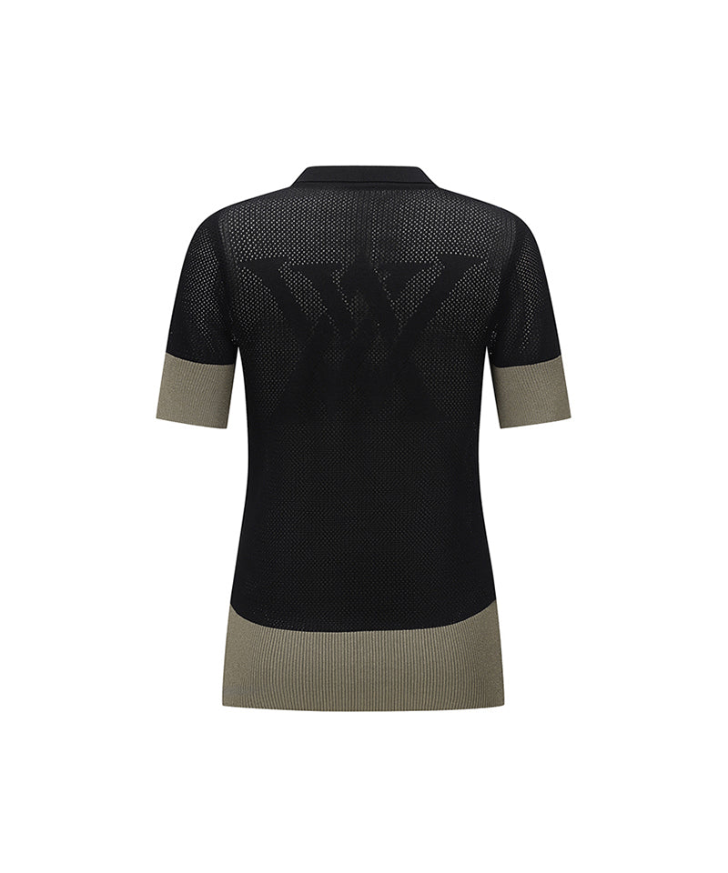 Women's Collar Color Combination Mesh Half SL - Black