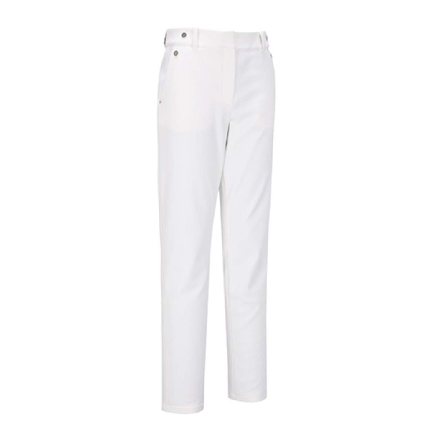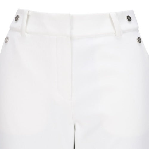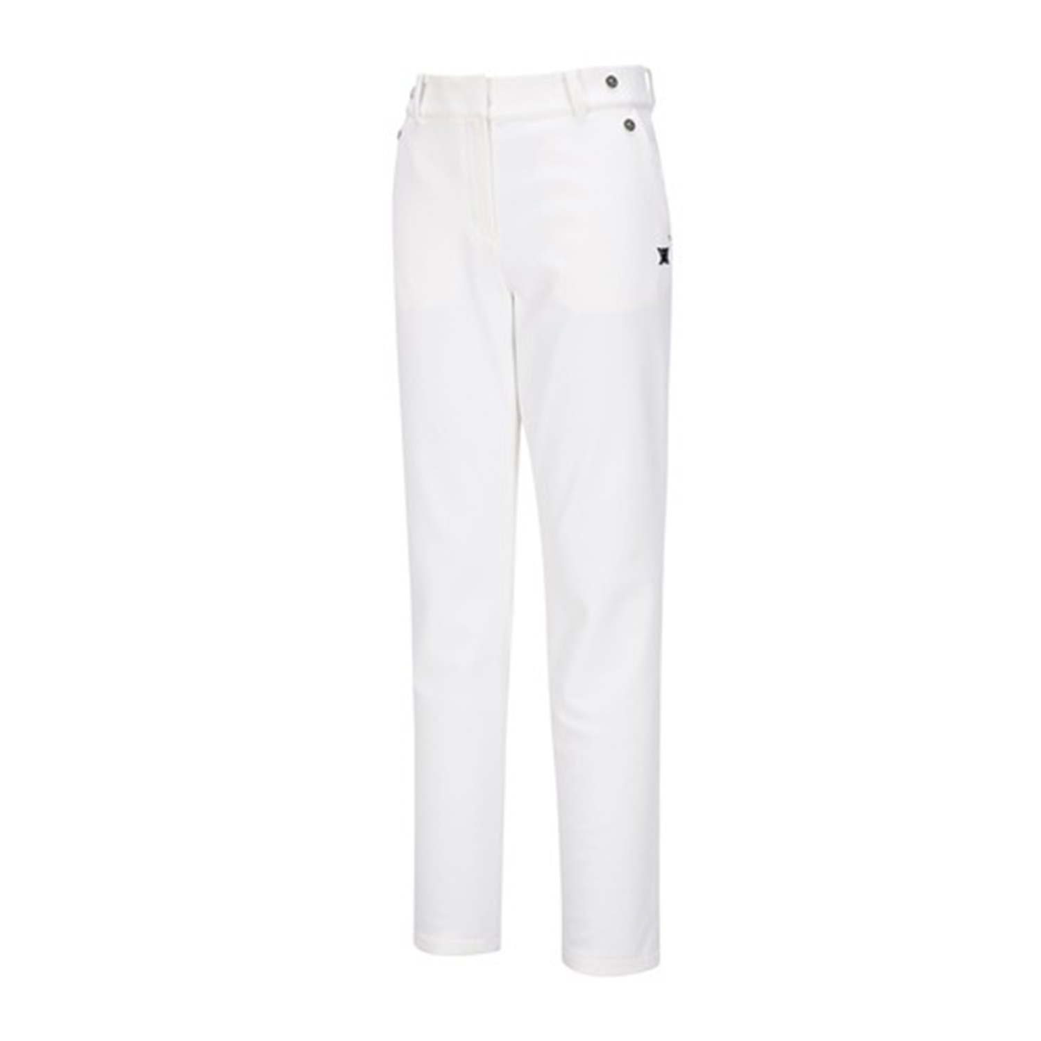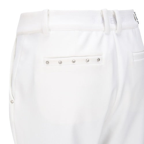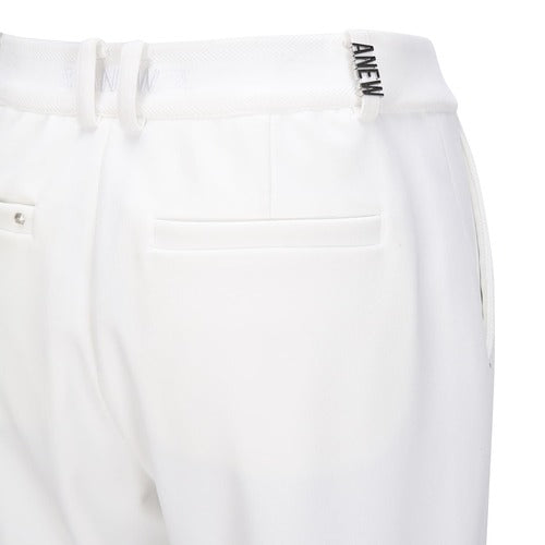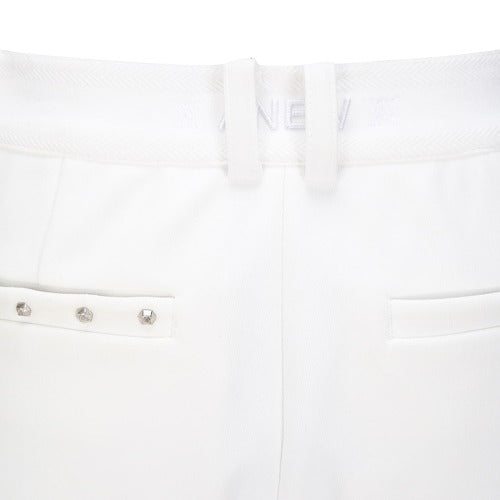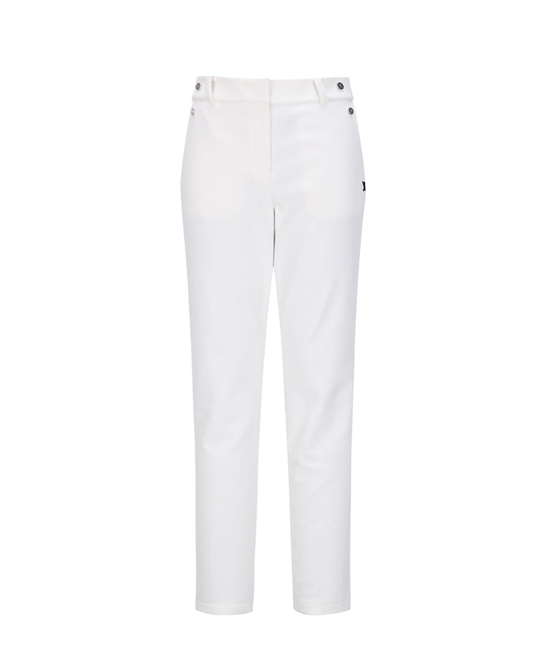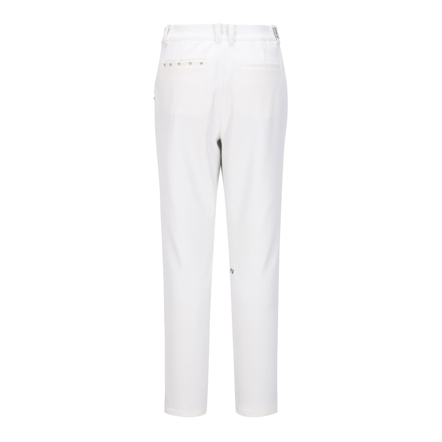 These are standard pants with snaps that feature the Anyu logo on the waist. These pants are simple in shape and are easy to layer with various tops and knits. The band and logo embroidery on the back of the waist adds a touch of luxury.
