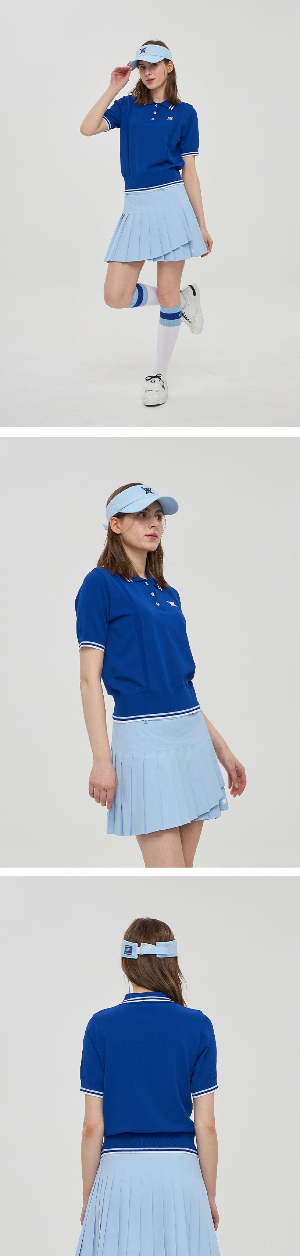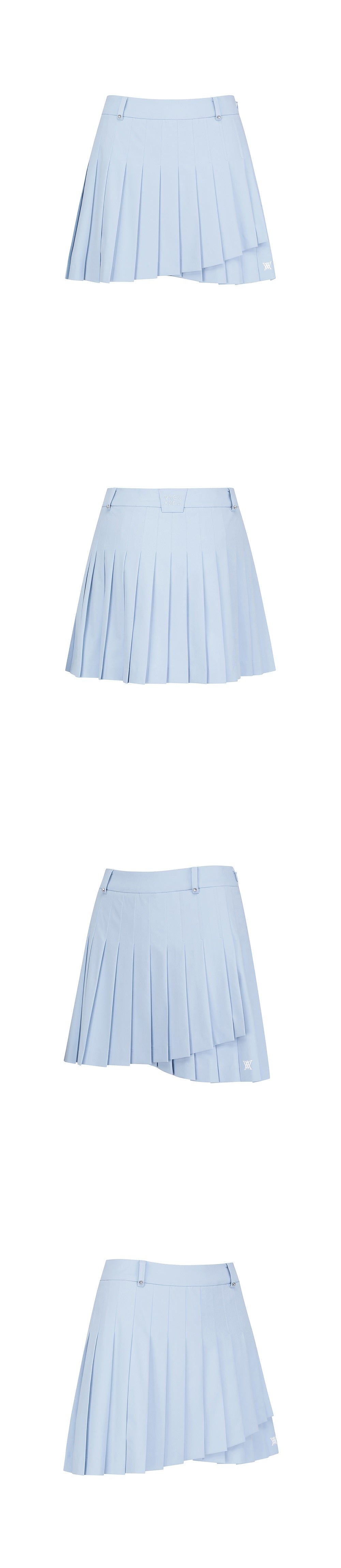 This is a pleated skirt with diagonal fine pleats. Add a layer of pleats below the diagonal pleats at the top to create a little more volume. The lower part pleats are fixed towards the outseam for more comfortable wearing, and the upper part. The endpoint of the pleats is not fixed, allowing for a more dramatic look when swinging.
