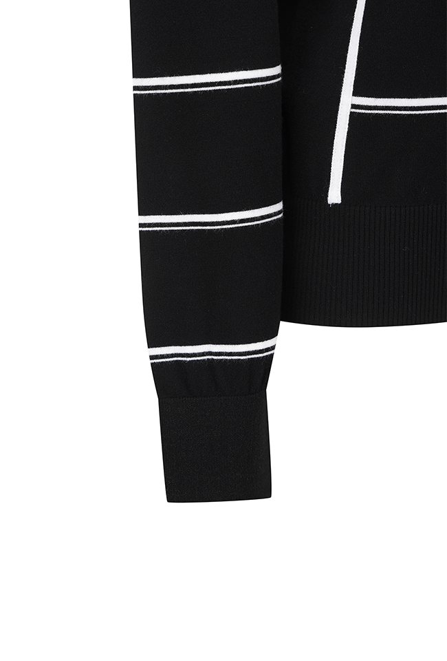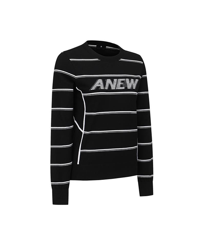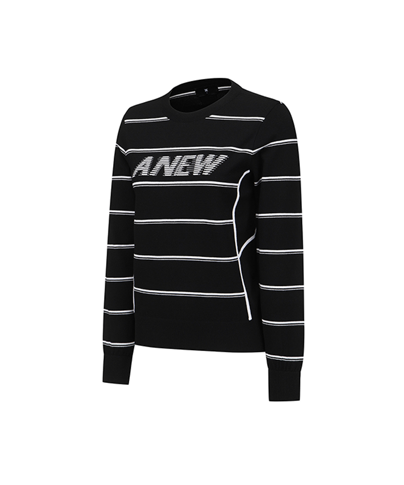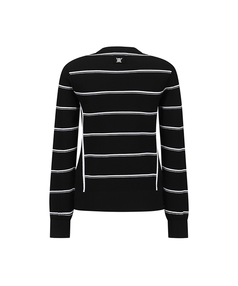 Women's Stripe Round Sweater - Black