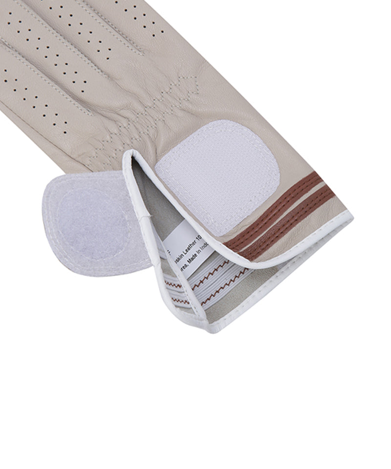 The detail of the two-line stripe sewn on the wrist line in a point color. of color